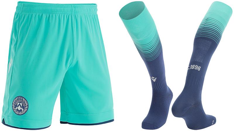 パンツとソックスもダークグリーンとターコイズの2色で構成。フィールドプレーヤー用のキットにこの系統の色は、ウディネーゼでは比較的珍しい。