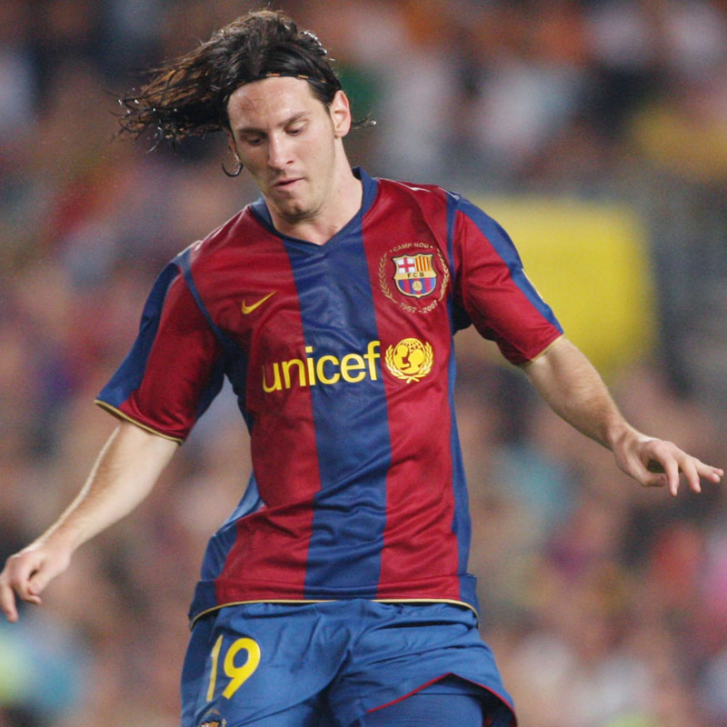 太めのストライプは、どことなく80年代のユニフォームを彷彿とさせるホームキット。本拠地カンプ・ノウが2007年で開場から50周年を迎え、エンブレムはそれを祝した特別デザインだった。