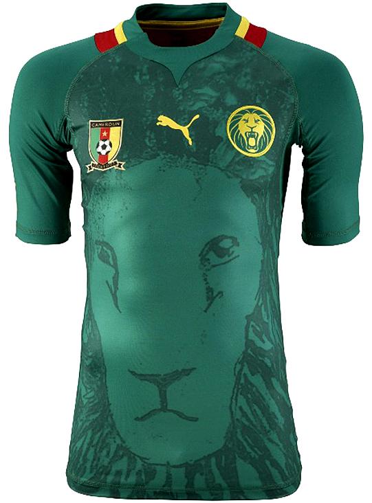 本来であれば2012年のアフリカネーションズカップで着る予定だったユニフォームだが、カメルーンは本大会出場を逃している。前面にチームの愛称ライオンを描くが、その表情に勇ましさは感じられない。