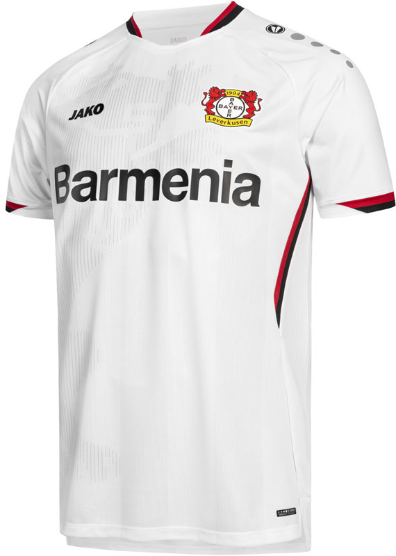 アウェイはホワイトを基調にレッドとブラックの差し色。前面にはエンブレムのライオンをシャドーストライプで描く。