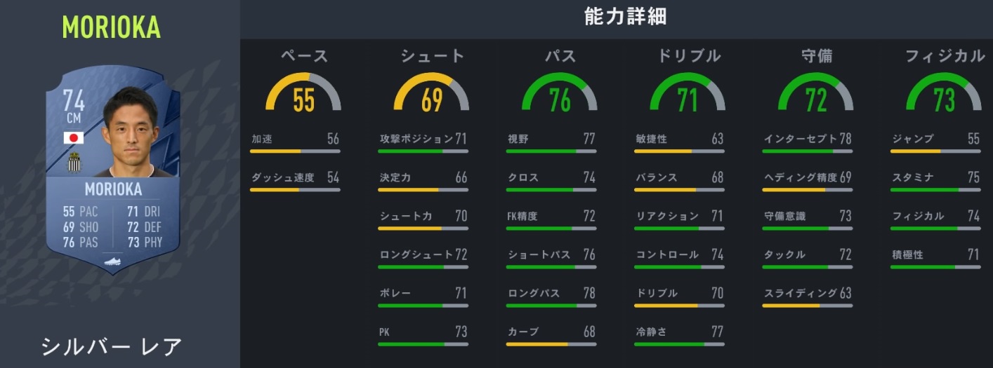 特性:ロングシューター(AI)、プレイメーカー(AI)、アウトカーブ