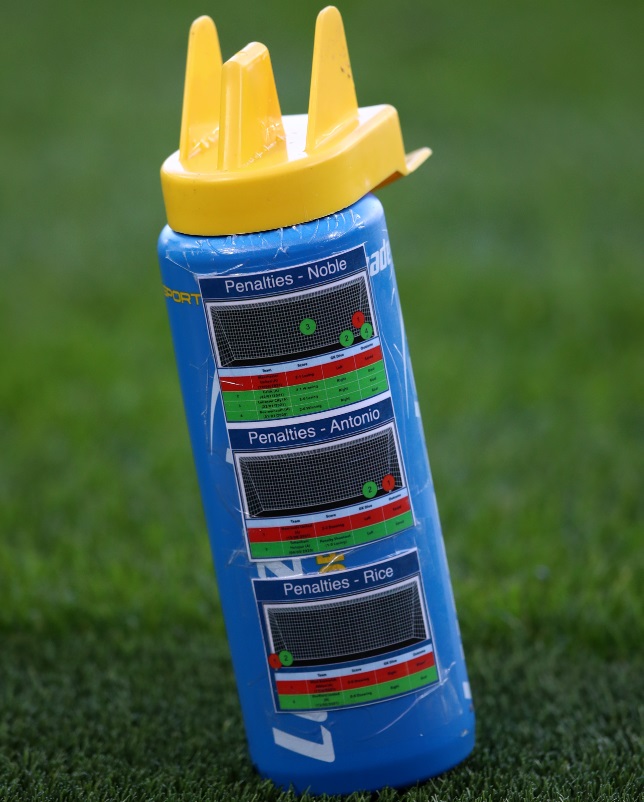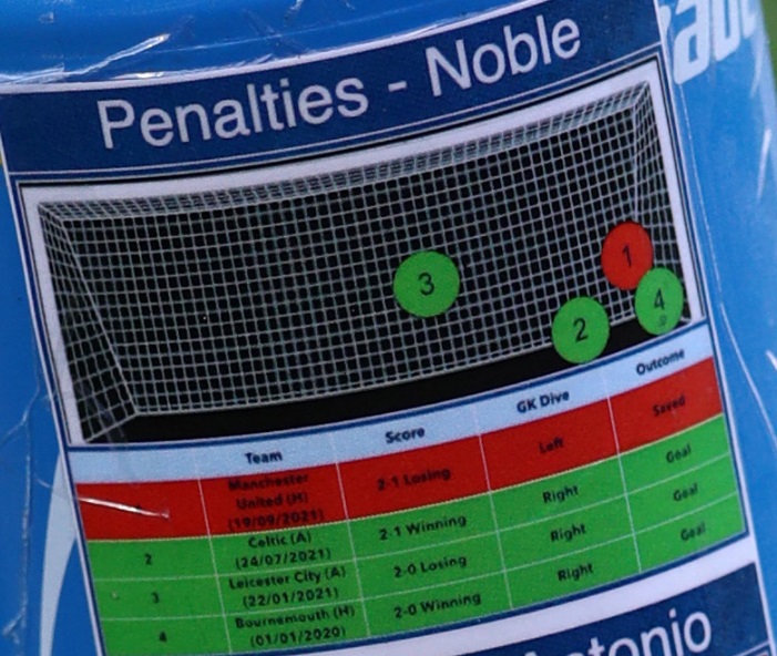 ウェストハムのPKキッカーであるマーク・ノーブル、ミカイル・アントニオ、デクラン・ライスのPK情報が張り付けてある!