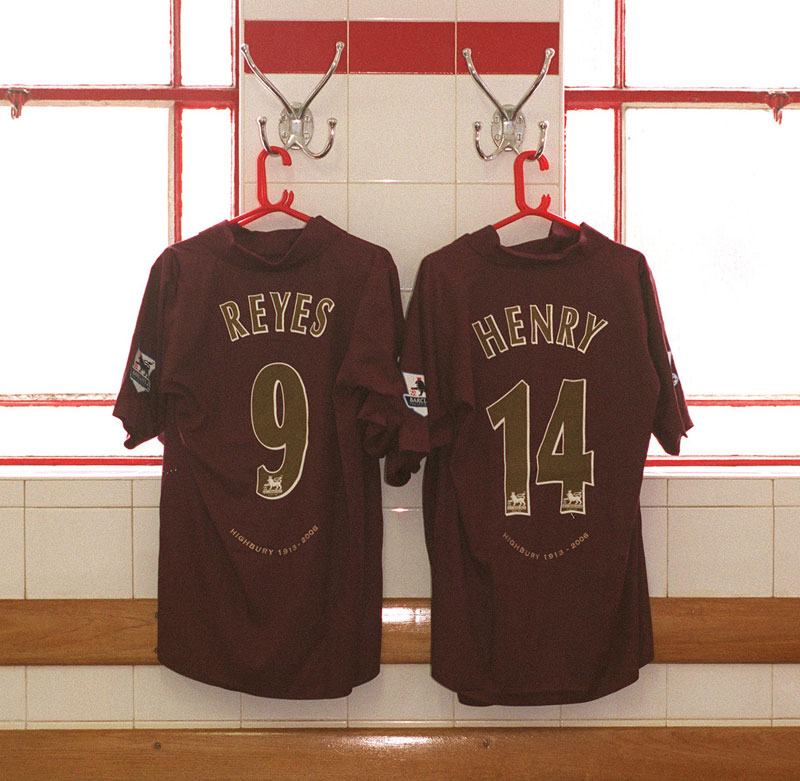 そのウィガン戦で試合前に撮影されたホセ・アントニオ・レジェスとティエリ・アンリのユニフォーム。見比べると一目瞭然だが、ネームナンバーのプリント位置がだいぶ違う。実は選手用ユニフォームの仕事は、思いのほか“雑”なのである。