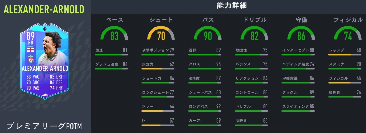 総合値は89になっており、かなり強い。ただ、本人的にはまだフィジカルあたりに不満がありそうだ…。