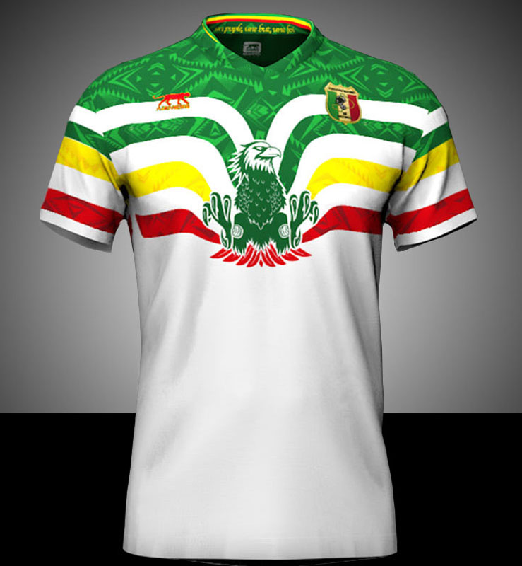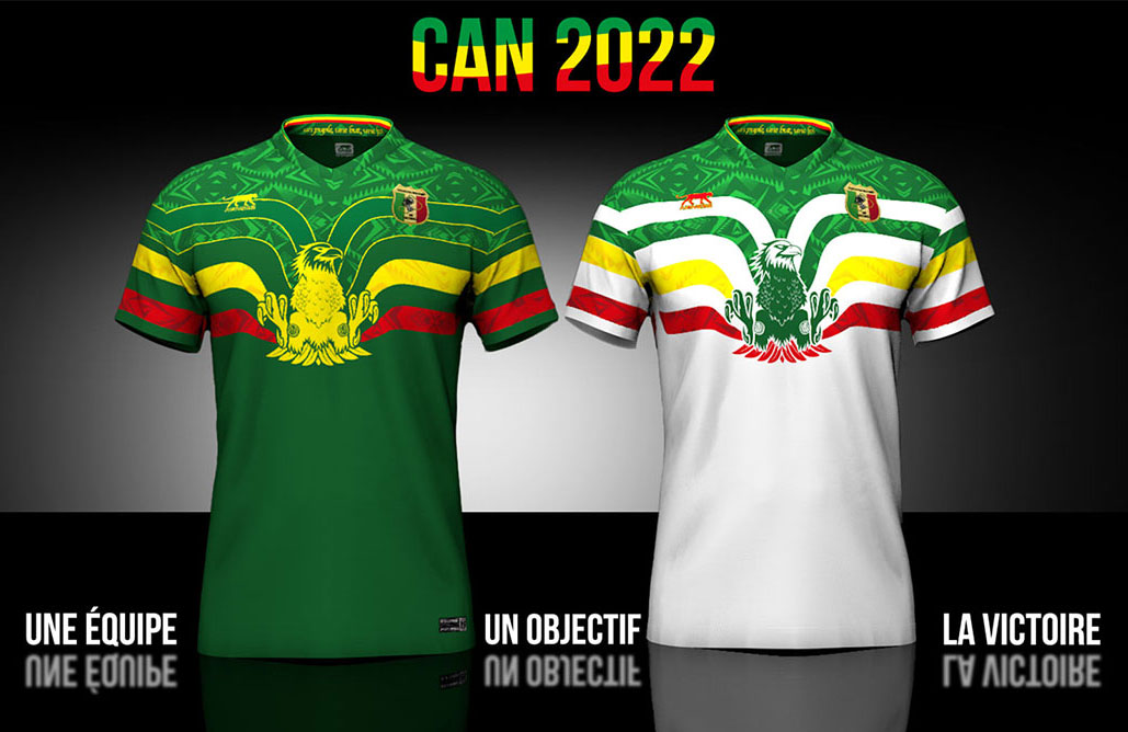新アウェイユニフォームはホワイトを基調に鷲を描くデザインで、基本的にホームキットの色違い。ちなみにマリの国章には鷲ではなく鳩が描かれている。