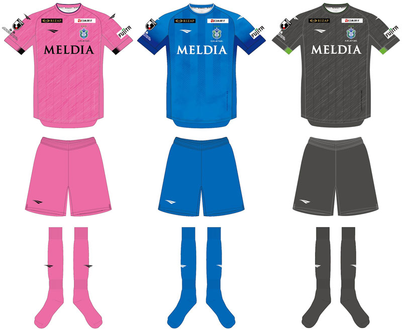 ゴールキーパーユニフォームは3色展開に。1stは「FP(フィールドプレーヤー)2ndのデザイン」をペールピンクで彩り、海のパワーが宿ると言われるピンク珊瑚をイメージ。2ndは「FP1stのデザイン」にシアンブルーを採用し、湘南の象徴である青い海をイメージ。3rdは「FP2ndのデザイン」をベースに、チャコールグレーのモノトーンカラーでスタイリッシュに仕上げた。
