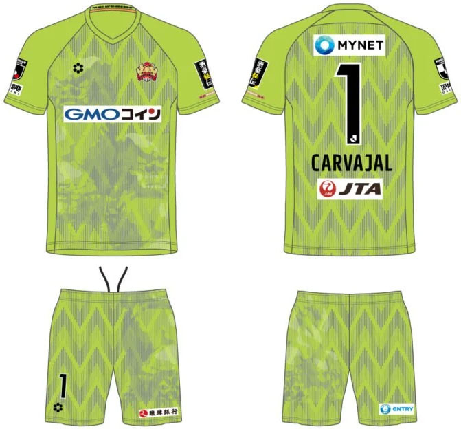 ゴールキーパーのホームはグリーンを採用。基本的にはフィールドプレーヤー用と共通のデザインとなる。