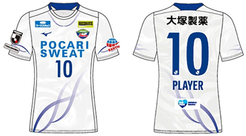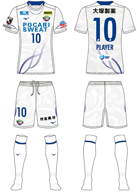各部のスポンサーは、胸に「POCARI SWEAT(ポカリスウェット)」、背中上に「大塚製薬」、鎖骨右に「ワークスタッフ」、鎖骨左に「BODYMAINTE(ボディメンテ)」、左袖に「アース製薬」、パンツに「阿波銀行」。