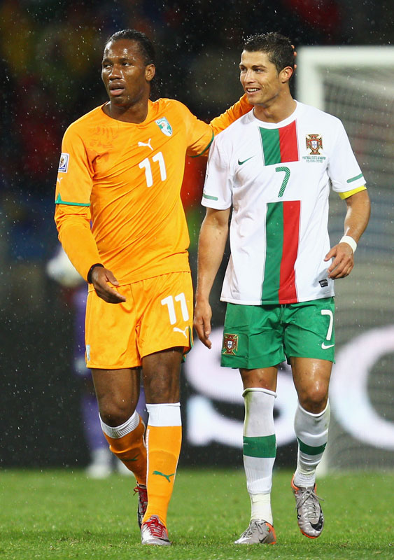 コートジボワール戦ではディディエ・ドログバと並び立つ姿も。異なる大陸のビッグネーム同士の2ショットは、W杯ならではの光景だ。