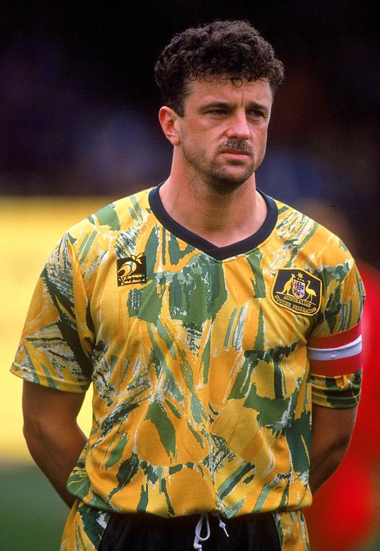 サプライヤーは地元のスポーツブランドKingRooで、91年から92年にかけて使用したホームキット。前衛アートのようなデザインが強烈なインパクトを放つ。画像の選手はかつてサンフレッチェ広島でプレーし、ベガルタ仙台の監督を務めた現オーストラリア代表監督のグラハム・アーノルド氏。