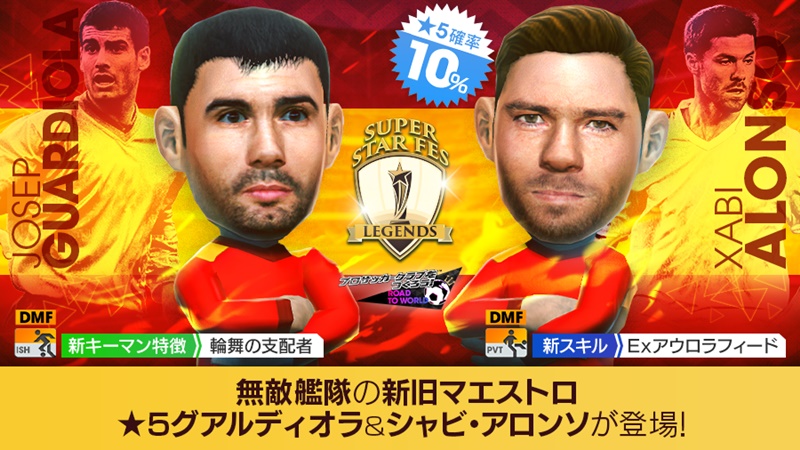 『プロサッカークラブをつくろう! ロード・トゥ・ワールド』「ジョゼップ・グアルディオラ」「シャビ・アロンソ」「ガイスカ・メンディエタ」など、 スペイン代表のレジェンドが新★5選手として登場する“SUPER STAR FES LEGENDS”開催!