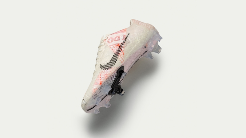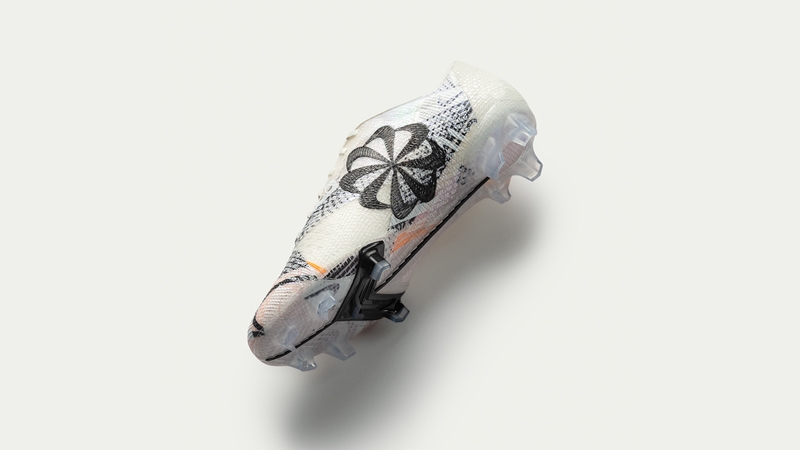シャーシ、ヒールカウンター、ミッドソールプレート、アッパーは、製品生産中に発生した廃棄物を活用した再生素材を100%使用。新しい素材を使うことだけが世界最高のサッカー選手に最高のパフォーマンスを提供し躍進させてくれる、という既存の概念を裏切るスパイクとなっている。