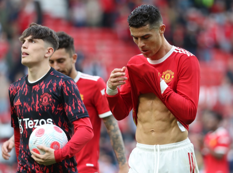ハットトリックの大活躍だったクリスティアーノ・ロナウドは記念のボールを若手選手にプレゼントしていた。