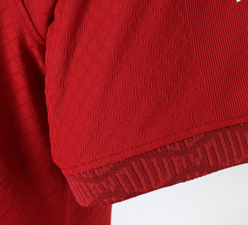 両袖口はストライプ柄に見えるが、これはサポーターズソングでありクラブのスローガン“You'll Never Walk Alone”の頭文字「YNWA」を落とし込んだもので、サポーターとの絆を表している。