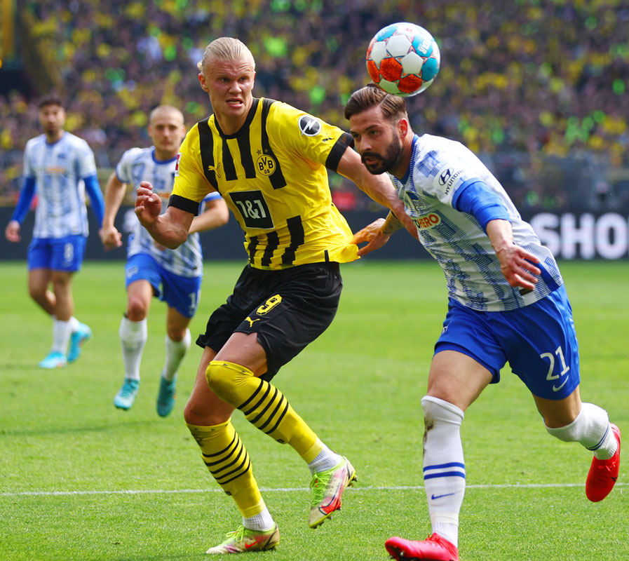 パンツはブラック、ソックスはイエローをそれぞれ基調とする。この新ホームキットは14日にホームで行われた21-22シーズン最終節のヘルタ・ベルリン戦でデビュー。試合は2-1で勝利を収めた。