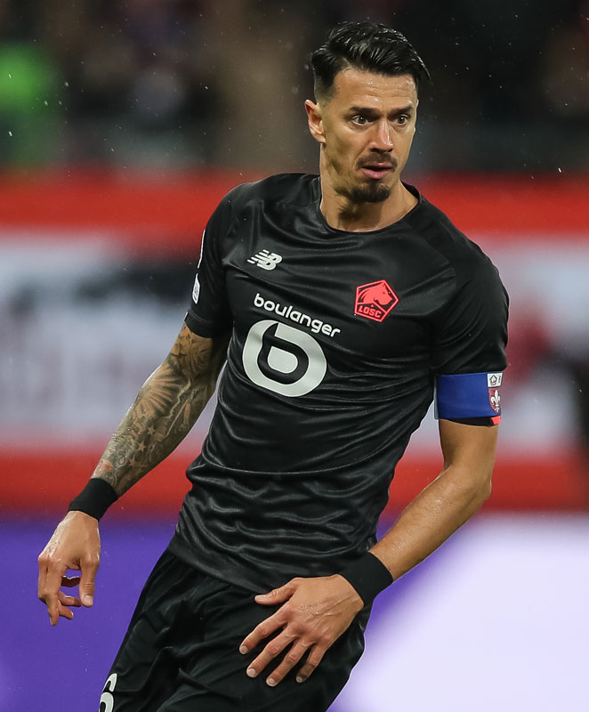 ほぼブラック一色のサードユニフォーム。左胸のエンブレムはレッドのモノクローム仕様が格好よい。選手着用画像では分からないが、実際には腹部にホームタウンであるリールの「伝説的な城塞」を描いている。