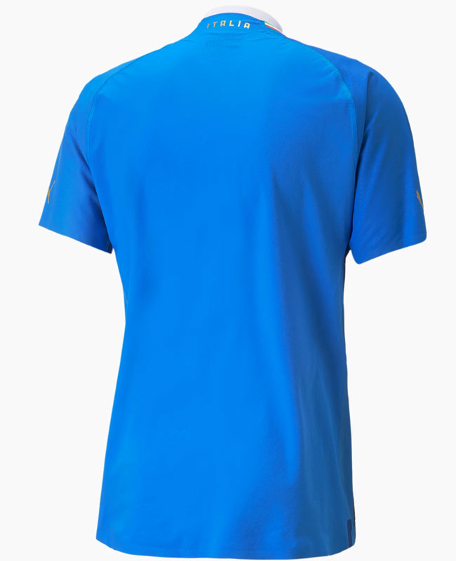 どんなに長くても年内しか使われることのない新ホームキット。そのデザインは過去のワールドカップ優勝に敬意を表した4分割(クォータリー)スタイルを採用となった。右胸には懐かしいPumaロゴが登場。背面首元には“ITALIA”をゴールドで華やかにレタリングする。