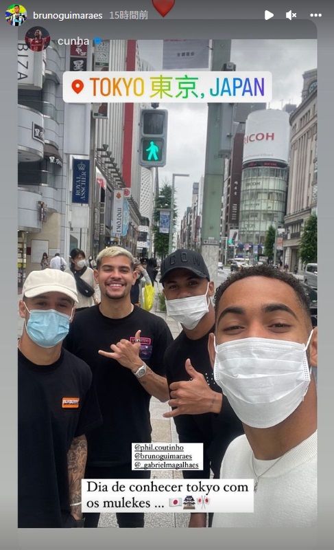 一方、フィリペ・コウチーニョ、ブルーノ・ギマランイス、ガブリエウ・マガリャンイス、マテウス・クーニャは銀座の街に繰り出していた。