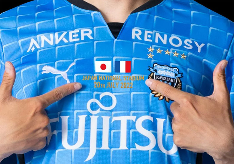 川崎は通常のリーグ戦ホームキットを着用したが、背番号と選手名はPSG戦のみ使用のスペシャルバージョン“Lumière”が登場。胸にはPSG戦のマッチデイをプリントする。