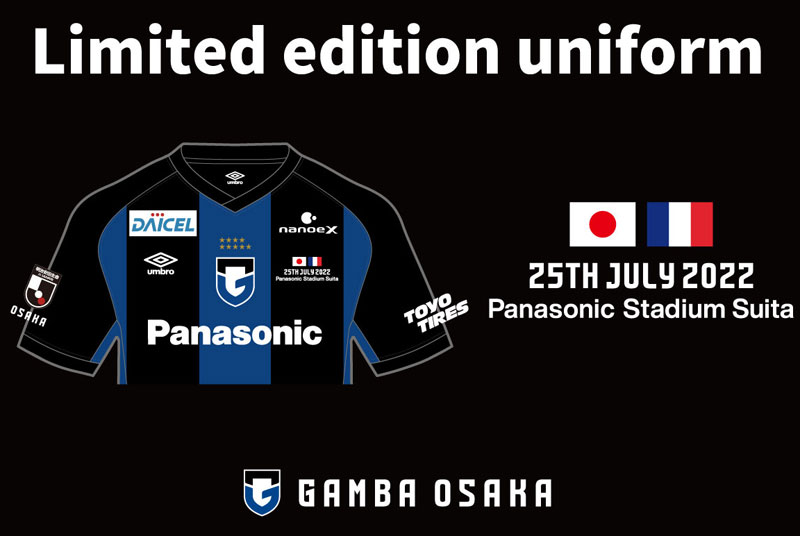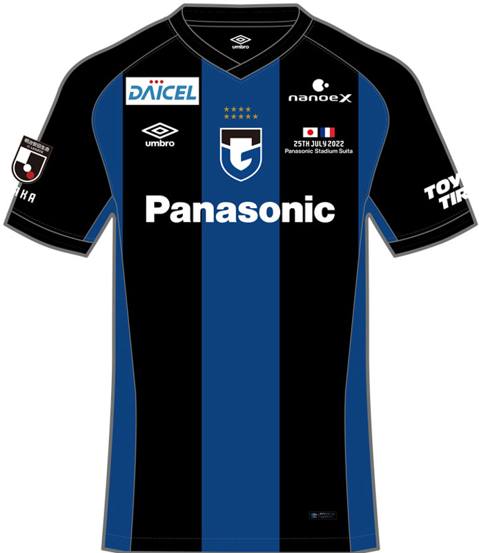 PSGジャパンツアー最終戦の相手はガンバ大阪。ユニフォームは通常のリーグ戦ホームキットを着用し、左胸にPSG戦のマッチデイをマーキングする。