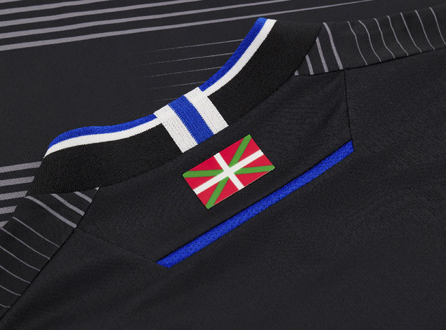 各ユニフォームの背面首元にはバスク旗のイクリニャを配置。ソシエダなどバスク地方を本拠地とするチームのユニフォームではお馴染みの旗である。