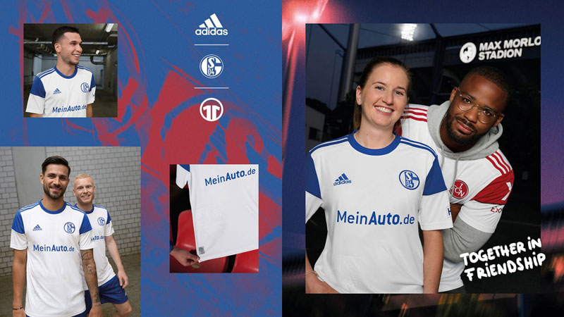 22-23アウェイユニフォームは、ホワイトを基調にブルーを組み合せるシャルケ伝統のカラーリングを採用となった。