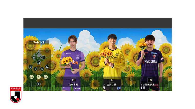 この夏休みバージョンの選手紹介は、8月21日(日)の第26節まで使用されるとのこと。