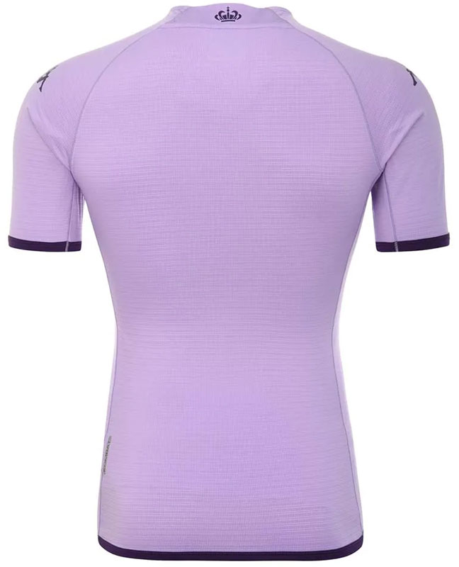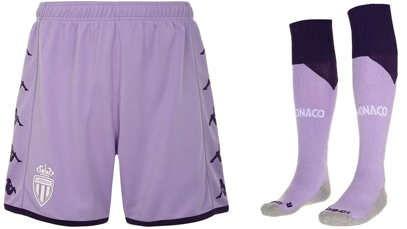 22-23新サードユニフォームはライトパープルを基調に、前面のグラフィック部分にダークパープルを組み合せた“濃淡紫色”が織り成すデザイン。濃い部分に散りばめている細かな模様は、モナコ公国の国章に描かれているダイヤモンドパターン。