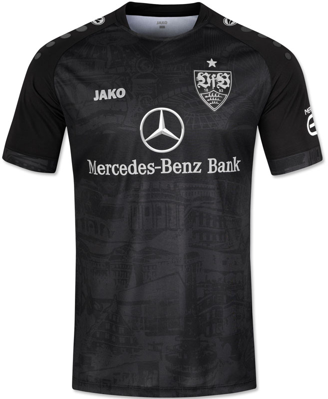 22-23新サードユニフォームはブラックを基調とした中に、ホームと同じく動物園や宮殿、教会など街を構成する24のランドマークを透かしでプリント。キットカラーに合わせてエンブレムはモノクロームに変更し、スタイリッシュなデザインに仕上げている。