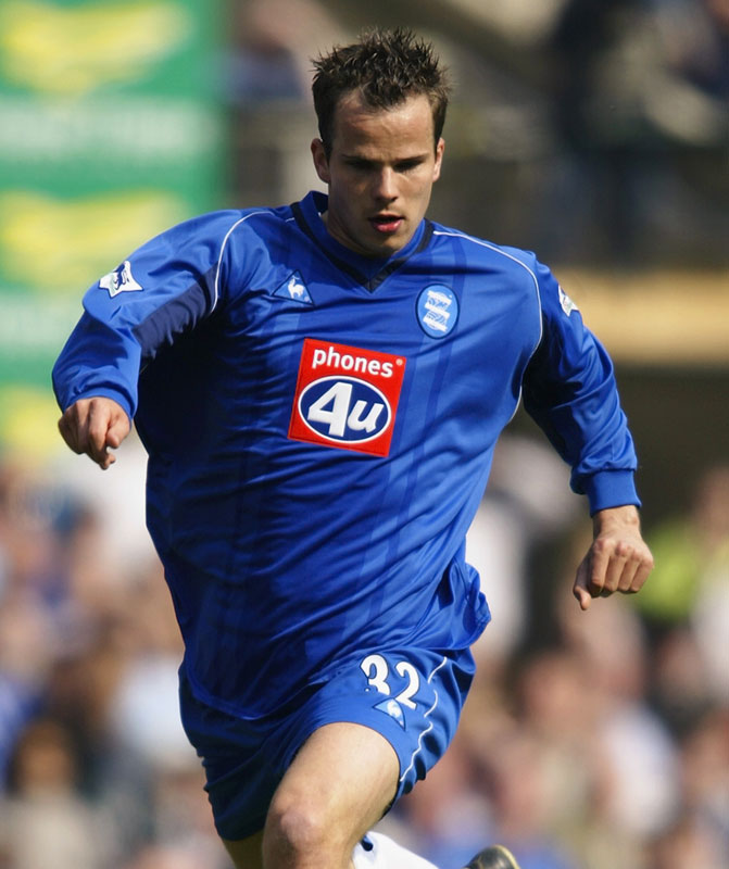 プレミアに昇格したシーズンのユニフォーム。バーミンガムは当時から毎年ユニデザインを変えている。02-03モデルは伝統的に使われてきた白をほぼ排除し、濃淡の青で構成するデザイン。20年前のものとは思えないスタイリッシュな一着だ。