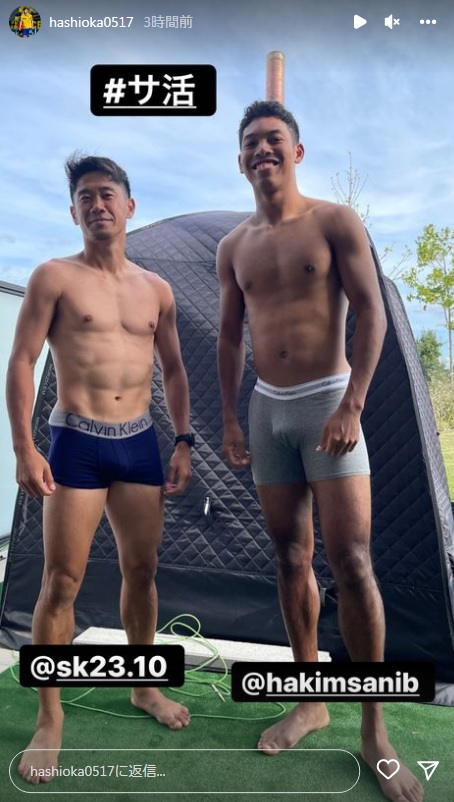 33歳になった香川とサニブラウンがバキバキのボディを披露!10歳年上の香川だが、腹筋の仕上がり具合は負けてない!?