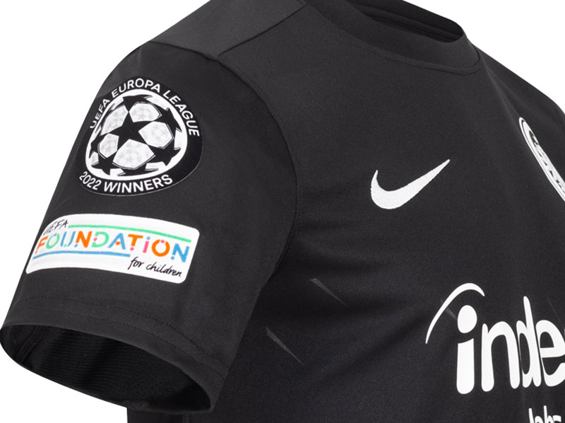 フランクフルトにとってクラブ史上初となるチャンピオンズリーグ出場。右袖には昨季のヨーロッパリーグ王者であることを示すCLパッチを装着し、特別感が高まる一着に。