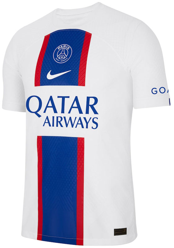 22-23新サードユニフォームは、ホワイトを基調にブルーとレッドのストライプを中心に走らせる。レッドで縁を彩るブルーのストライプはクラブ史上初めて採用となった。
