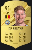 4位 ケヴィン・デブライネ(マンチェスター・シティ):91