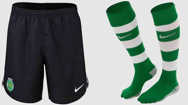 パンツはブラック、ソックスはグリーンとホワイトのボーダー柄を採用。この組合せはスポルティングの定番である。