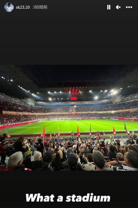 ミラン対ナポリ戦を現地観戦したことをSNSで明かしていたぞ。