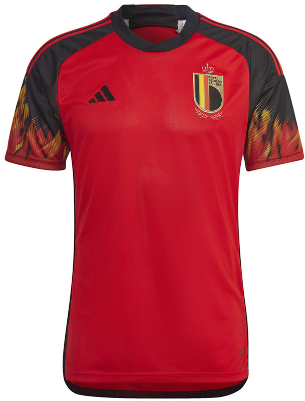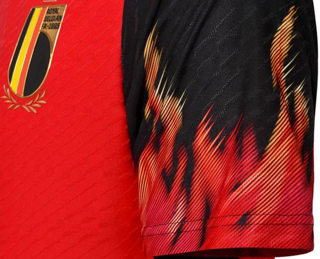 2022新ホームユニフォームはレッドを基調とし、各部にブラックを配する伝統的なスタイルを採用。ただしグラフィックはこれまでのベルギーにはない斬新なもので、驚きのデザインが登場した。