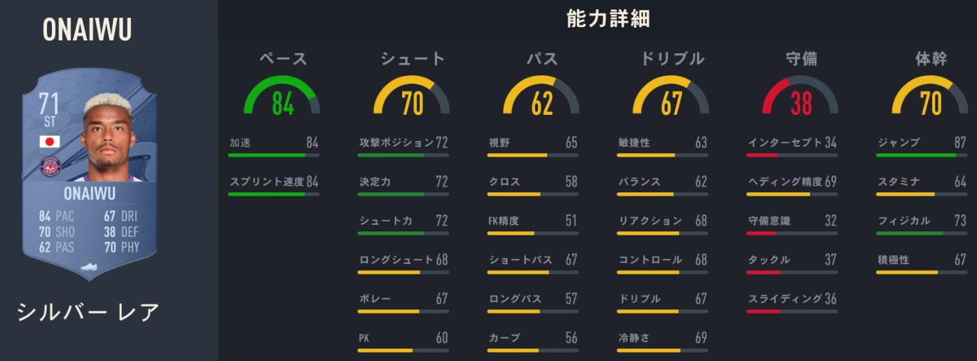 能力値:72、特性:華麗な身のこなし、アウトカーブ