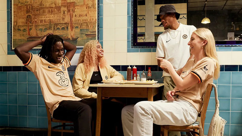 ユニフォームの発表と同時に公開されたビジュアルイメージ。60年代の雰囲気を感じるこの撮影場所は、ロンドン南西部フラムにあるクラシックなバー「River Cafe」。なかなか雰囲気の良いショットである。