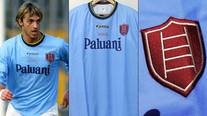 キエーヴォのエンブレムといえば黄と青で彩る“ロバに乗る貴族”のデザインが有名ですが、サード(あるいはアウェイ)には梯子を描いた臙脂のエンブレムを使っていました。