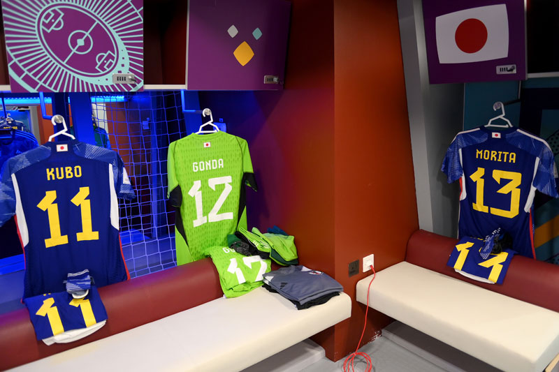 ここでは、その日本がドイツ、コスタリカと試合を行った会場のロッカールーム(ドレッシングルーム)とユニフォームをご紹介しよう。