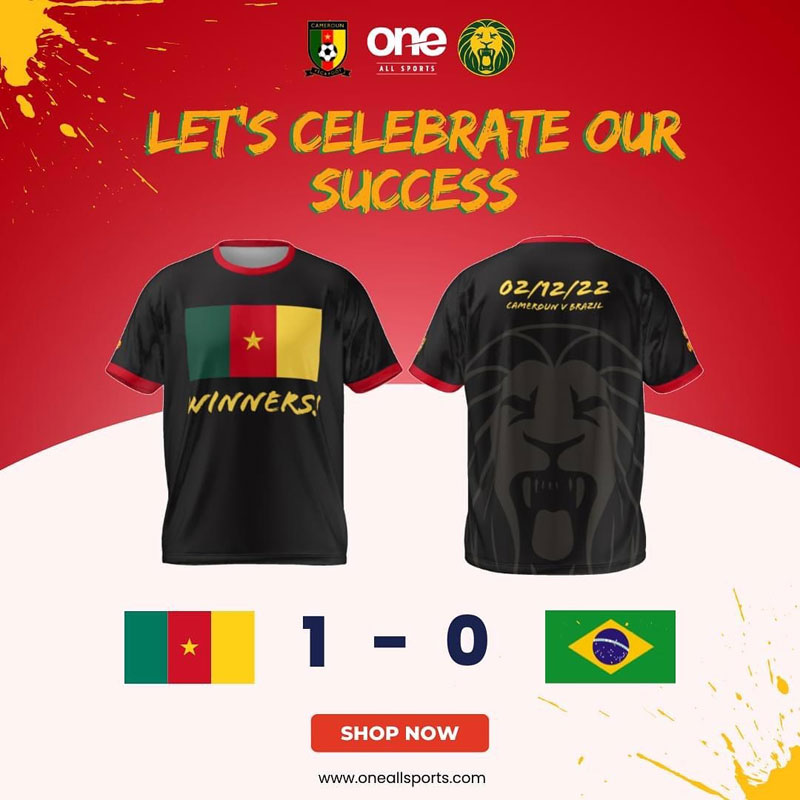 そのカメルーンと8月にサプライヤー契約したばかりのOne All Sportsが3日、「勝利記念Tシャツ」を発売した。