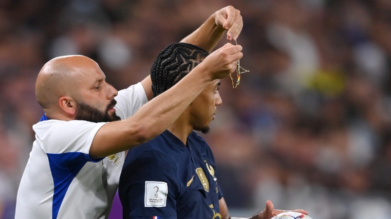 フランスDFジュール・クンデが金のネックレス2本をつけた状態で出場しており、前半40分すぎに副審からそれを外すように命じられたのだ。