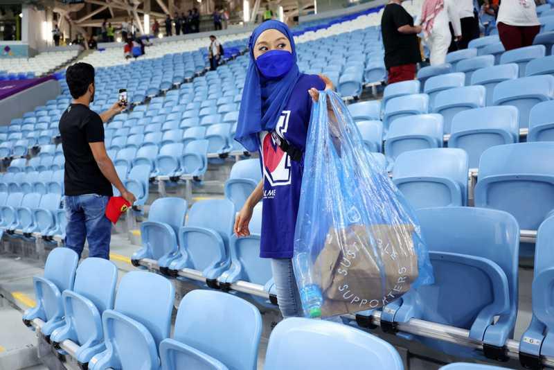 さらにスタジアムの観客席では青い服に身を包んだ日本代表のサポーターがゴミ拾いを行っていたようだ。