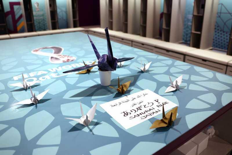 試合を終えた後の選手やスタッフは、スタジアムのドレッシングルームを美しく整理整頓し、恒例の折り鶴を残していった。