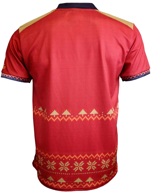 カリアリとキットサプライヤーのEYE Sportが発表したXmas仕様のプレマッチ・ジャージは、チームカラーの一つであるレッドを基調にゴールドというクリスマス感たっぷりのカラーリング。デザインはいわゆる「おとな可愛い」感じのオシャレな雰囲気だ。