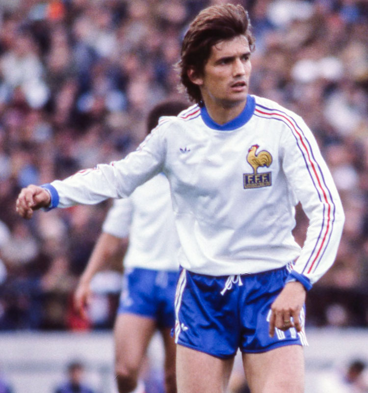 この時期のフランスのユニフォームは、70年代や80年代を代表するものが多い。78年大会のアウェイは定番のデザインではあるが、国旗色の配したが大変オシャレで見事な一着。