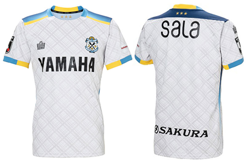 画像で確認できる各部スポンサーは、胸に「YAMAHA」、背中上に「SALA(サーラグループ)」、背中下に「SAKURA(サクラ工業)」、左袖に「HAMAMATSU(浜松ホトニクス)」。