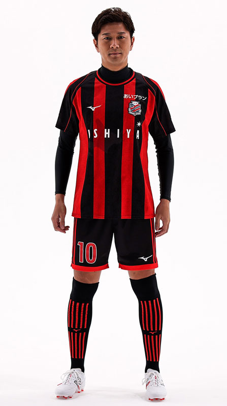 背中のストライプは12本で構成し、選手一人一人がサポーターの思いを背負い、またサポーターも共に戦っていくというイメージをデザインしている。