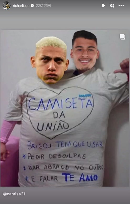 さらに、リシャルリソンはこんなミーム画像もSNSに投稿。